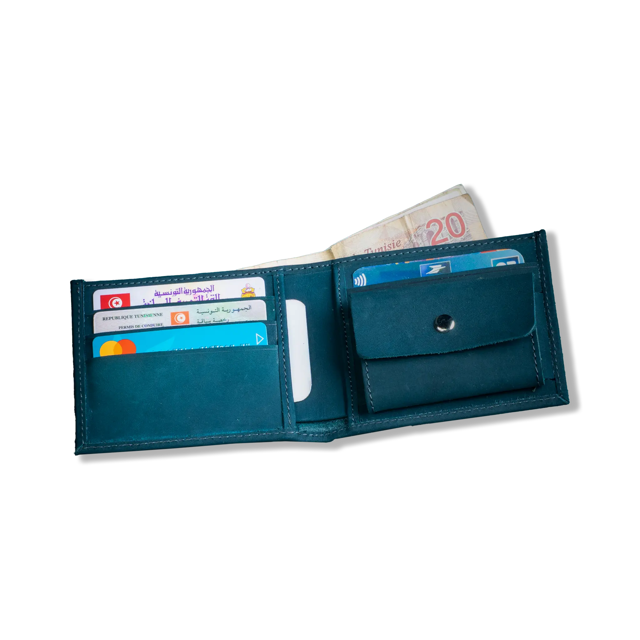 crafted from premium full-grain leather, designed for durability and effortless style. Minimal bulk meets smart organization: dedicated card slots, a spacious bill compartment, and a secure snap-button coin pocket. Ages beautifully with use, making it the perfect everyday wallet for those who value timeless functionality
